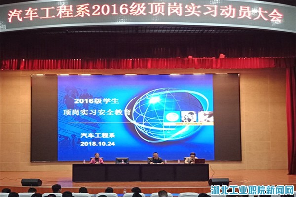 10月24日下午,汽车工程系在图书馆会议中心召开了2016级学生顶岗实习动员大会,汽车工程系主任张健、党总支书记王俐凤、副书记梁军萍以及16级辅导员和全体16级毕业生参加了此次会议。会上,张健就顶岗实习期间的具体工作和要求进行了全面的安排和部署,阐述了顶岗实习的重要意义,要求同学们人人参与实习、服从实习单位的管理、与辅导员和校内指导老师保持密切联系,勉励同学们发扬吃苦耐劳的精神,在实习岗位上积累知识、放宽眼界,通过顶岗实习这次预就业课程完成“破茧成蝶”的蜕变,成为“会学习、会做人、会做事和有技能”的高素质人才,为今后的就业和职业发展打下良好的基础。党总支书记王俐凤就顶岗实习期间同学们应该注意的安全问题做了详细的讲解,提醒同学们注意人身和财产安全,全体同学对实习安全有了进一步的认识。