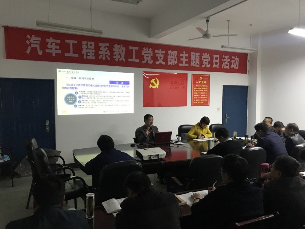 (文/马斌)汽车工程系教工党支部于11月6日下午在5508会议室召开11月份主题党日活动。院党委书记魏文芳作了以“铸魂锻能 新时代高校教师新使命”为主题的党课,汽车工程系全体教师参加了活动。