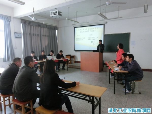 11月27日下午,由汽车工程系团总支学生会主办的金秋大专辩论赛在6204教室举行,比赛由汽车工程系团总支书记王洁担任主持,学工办主任柳海涛、大一、大二辅导员以及部分学生会干部担任评委。