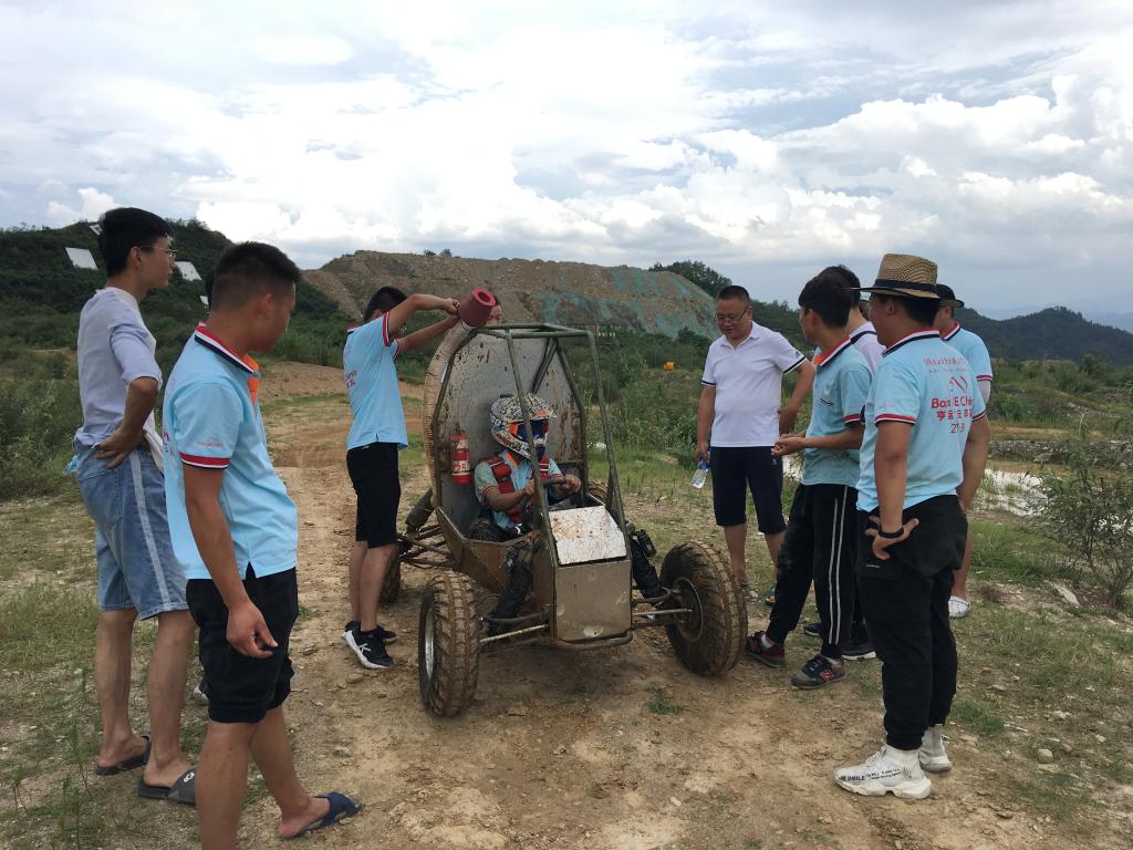 据悉,为全力备战巴哈大赛,beat365官方唯一网站自三月份就组建了参赛团队,利用课外时间研讨、设计、制作、组装赛车,撰写项目计划,一遍一遍地修改打磨。暑期,为了抓紧时间备赛,13名参赛同学主动留校训练,在指导教师周恒带领下,克服天气热、条件差等困难,在校外练车场不断试验完善赛车性能。
