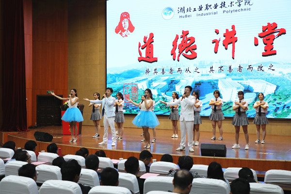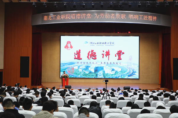 本期道德讲堂由beat365官网与二堰街办高校园社区共同主办,党委宣传部、beat365官方唯一网站承办,副校级干部陈穗川、beat365官方唯一网站、机电工程学院师生及二堰街办高校园社区干部群众代表500余人参加了活动。本期讲堂以“为劳动者放歌 唱响工匠精神 ”为主题,讲堂在和山之声微唱团带来的歌曲——《幸福是奋斗出来的》中拉开帷幕,唱德、立德、明德、品德、传德、润德等环节依次进行。