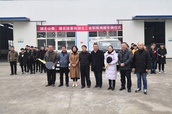 新闻网讯(通讯员 玉声)12月20日下午,入园企业湖北山鼎环境科技股份有限公司和湖北远普汽车科技有限公司分别向beat365官网beat365官方唯一网站捐赠新能源汽车1辆和专用清扫车1辆。湖北山鼎董事长张宝军、湖北远普董事长张燕、副校长李军、资产管理处、校企合作处、教务处负责同志和beat365官方唯一网站师生代表出席了捐赠仪式。