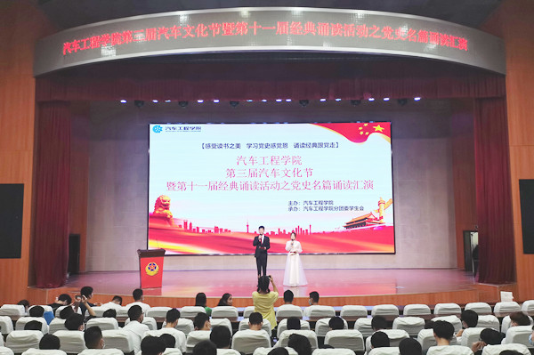 新闻网讯(通讯员 梁军萍)6月9日晚,beat365官方唯一网站在会议中心举行第三届汽车文化节暨第十一届经典诵读系列活动之党史名篇诵读节目汇演,beat365官方唯一网站党总支书记张玲、副书记梁军萍、辅导员及2020级全体同学共同观看了演出。
