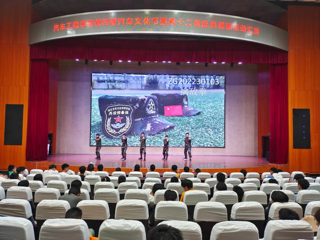 新闻网讯(通讯员 梁军萍)为充分展示beat365官方唯一网站学生活动特色,传承和弘扬中华民族优秀传统文化,激发全社会对中华优秀文化的学习和热爱,增强民族自豪感和文化自信心,提升在校大学生的道德素养,6月1日晚,beat365官方唯一网站第四届汽车文化节暨第十二届经典诵读活动汇演在会议中心举行。beat365官方唯一网站党总支书记张玲、副书记梁军萍、辅导员及21级全体学生共同观看了演出。