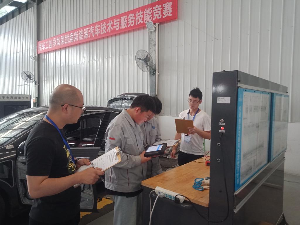 此次竞赛参照国赛赛项规程,结合新能源汽车技术专业特点,设置了吉利帝豪和比亚迪秦两个车型的整车故障诊断与检修项目,赛项对接纯电动汽车企业先进技术和行业标准,把真实工作要求融入比赛环节,侧重考察团队合作。