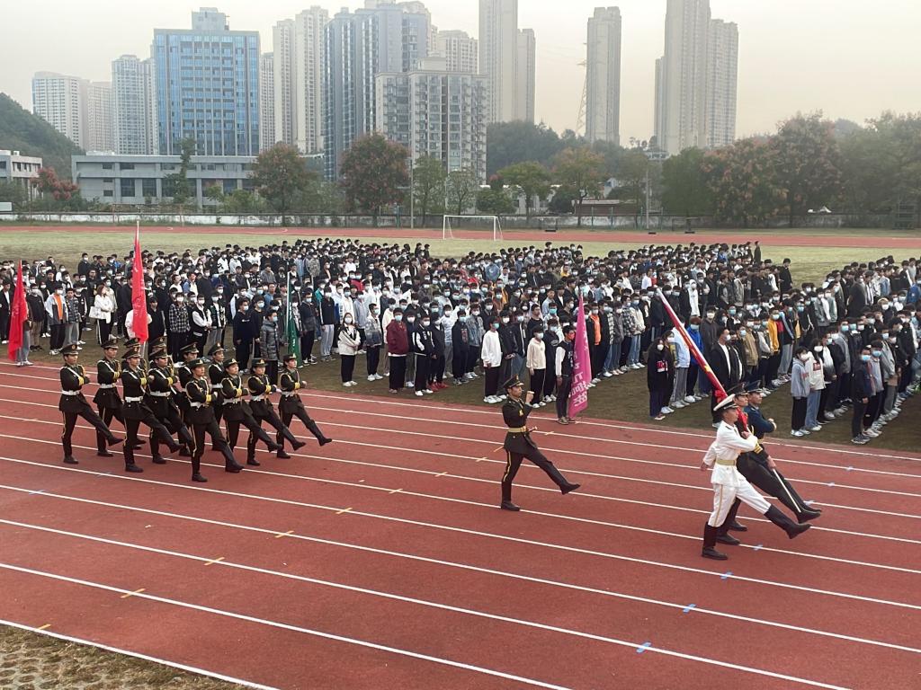 清晨七时整,升国旗仪式正式开始。国旗仪仗队的同学们迈着整齐划一、铿锵有力的步伐,护送着五星红旗正步走向旗杆,全院师生面向国旗肃立致礼,随着军乐队奏响激昂的《义勇军进行曲》,师生们注视着五星红旗冉冉升起,在熠熠晨光中迎风飘扬。