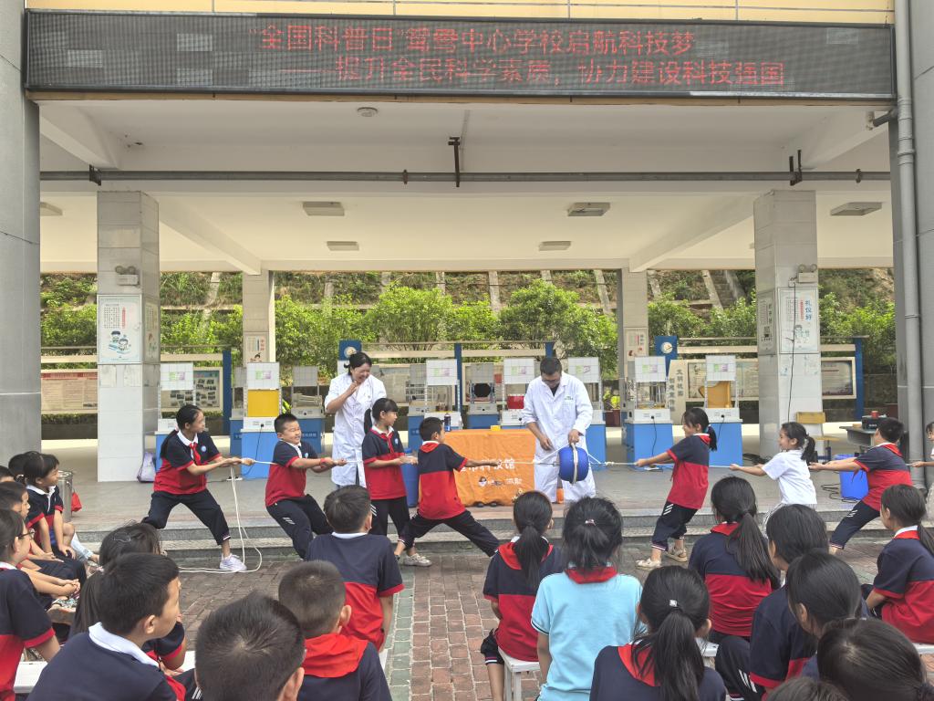 (通讯员:张勇)2024年6月,beat365官方唯一网站马伟老师被十堰市茅箭区教育局发文聘为鸳鸯中心学校科学副校长。自任职以来,他一直关心着该校的科普工作。为帮助青少年提升科学素质,激发科学兴趣,9月12日下午,在“全国科普日”来临之际,马伟走进该校精心策划组织了首届校园科技节,为全校师生提供了一场集科学性、知识性和趣味性于一体的流动科技馆和科普秀。