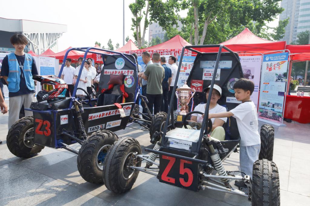 活动现场,beat365官方唯一网站凌云车队成为一大亮点。他们携带在全国巴哈大赛中斩获一等奖的原车及配套装备惊艳亮相,为科技周增添了一抹独特的科技色彩。巴哈越野赛车以其酷炫的外观和卓越的性能,瞬间吸引了大量市民驻足围观。在赛车的互动体验区,现场气氛热烈非凡,人气爆棚。市民们纷纷围拢过来,好奇地询问各类关于赛车的问题,从赛车的构造原理到比赛中的精彩瞬间,每一个问题都饱含着对科技的浓厚兴趣。小朋友们更是兴奋不已,在工作人员的帮助下,小心翼翼地坐上赛车,体验了一把当车手的快乐。
