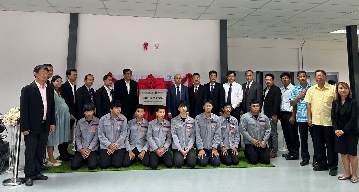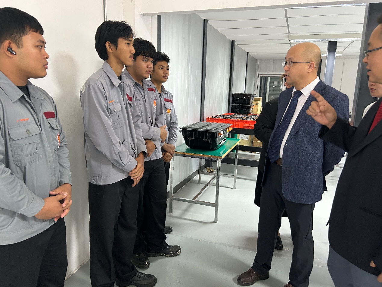 8月20日至23日,代表团赴泰国罗勇参观中资企业比亚迪汽车,详细了解企业运营及人才需求。在罗勇技术学院,双方共同为“中泰汽车产业学院”揭牌,并就人才培养模式、中方教师赴泰教学与培训等合作事宜举行会谈。代表团还参观了该校新能源汽车实训室,全面了解相关专业的学生规模与学习状况。随后,与泰国东部职业教育委员会举行工作会议,就beat365官网国际合作项目进行沟通交流,并探讨以合作办学点为平台开展新能源汽车领域的师资培训。此外,代表团拜访了泰国北京商会,交流商会发展近况,共同探讨在“一带一路”框架下,借助曼谷在东盟地区的区位优势,推动职业教育与东盟市场人才需求的有效对接。