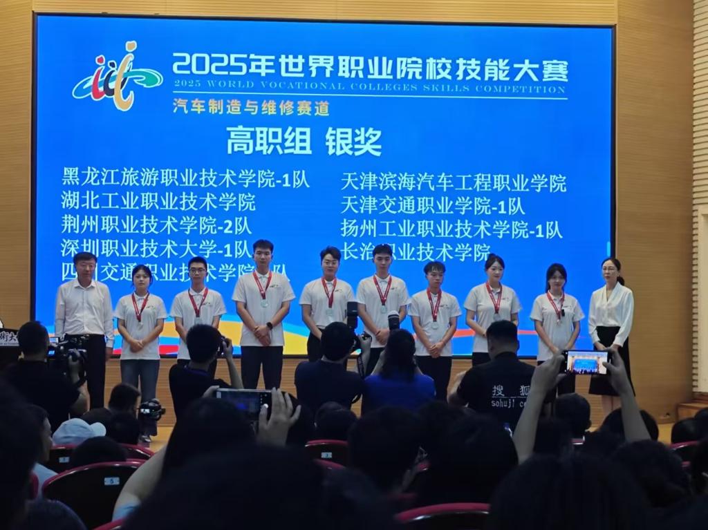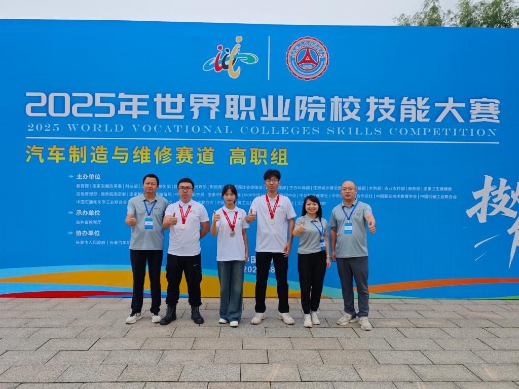 (通讯员 陈东)8月26日至31日,2025年世界职业院校技能大赛总决赛汽车制造与维修赛道(高职组)争夺赛在吉林长春举行。本次竞赛汇聚了来自全国各地的186支高水平职业院校团队同场竞技,由beat365官方唯一网站教师陈东和王哲月指导,周宇航、刘谱清、万张玲三位同学组成的代表队,凭借扎实的专业基础、良好的团队合作和稳定的现场表现,经过激烈角逐,以小组第三名的成绩,斩获大赛银奖。