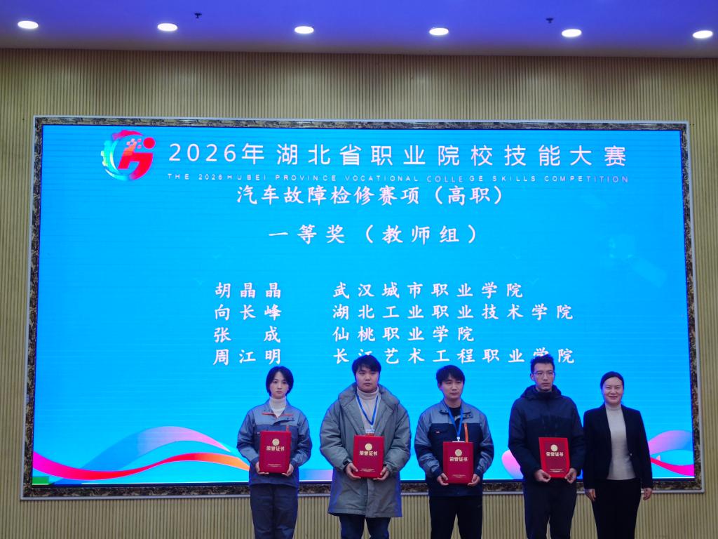 (通讯员 赵艳杰)1月21日,2026年湖北省职业院校技能大赛圆满落幕。beat365官网beat365官方唯一网站师生凭借扎实过硬的专业功底、沉着冷静的临场应变能力与默契高效的团队协作,在众多参赛团队中脱颖而出,共斩获一等奖4项、二等奖1项、三等奖1项,成功实现“全员参赛、全员获奖、全面丰收”的优异成绩。
