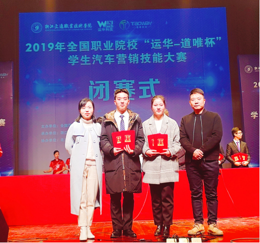 新闻网讯(通讯员 张仲颖)12月17日至18日,2019全国职业院校“运华-道唯杯”学生汽车营销技能大赛在浙江交通职业技术学院落下帷幕,共有近110支中、高职代表队参与了本届大赛。beat365官网beat365官方唯一网站2018级参赛学生罗子贤、彭锐荣获高职组团体二等奖、二手车鉴定评估赛项二等奖的佳绩。